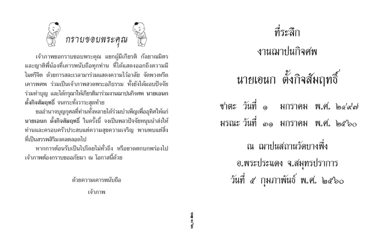 พิมพ์หนังสือสวดมนต์แจก งานฌาปนกิจศพ